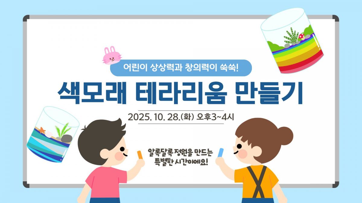 교육내용 | 알록달록 모래로 나만의 작은 정원을 꾸며보는 즐거운 체험! 상상력과 창의력이 쑥쑥 자라나요. |