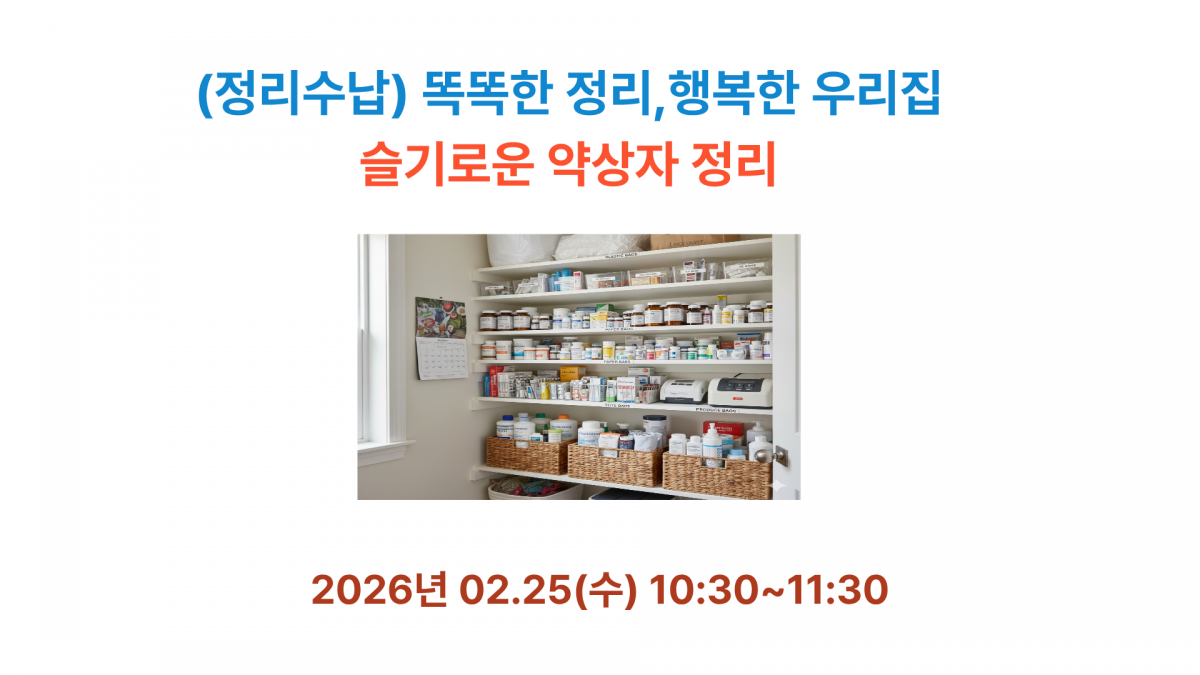 | 교육내용 | "슬기로운 약상자 정리" 프로그램 참여자께서는 실습을 위해 가정에서 보관중인 약 봉투나 약 상자를 직접 가져와 주세요! |